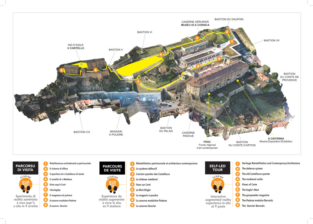 9 stations accompagnées d’un QR Code permettent au visiteur de découvrir des lieux méconnus du site et de prendre toute la mesure de son potentiel. Il s’agit de renforcer l’attractivité du musée et de la citadelle et de valoriser le patrimoine corse de manière innovante et inclusive.